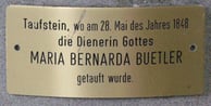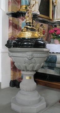 Taufstein von Maria Bernarda in der Pfarrkirche Auw.